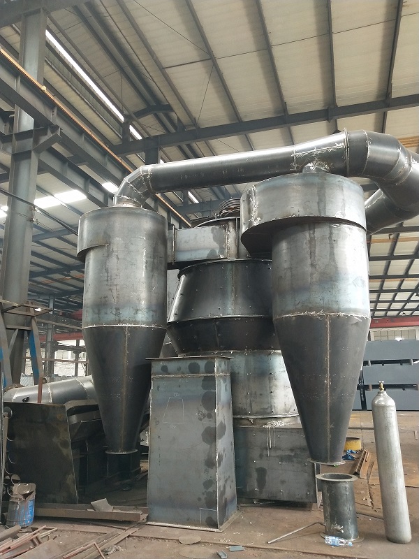 旋风式选粉机通过调速电机并经二级减速带动转盘上的60片叶片旋转,形成对粉子的分级作用。叶片转速的快慢是按成品粉子料度大小进行调节。当如要获得较细粒度粉子时,就bx提高叶片转速,使叶片与粉子接触增加,使不合要求的粉子被叶片抛向外壁与气流脱离,粗粉子因自重力的作用落入磨室进行重磨,合格的成品粉子被叶片随气流吸入大旋风收集器内,气流与粉子被分离后,粉子被收集。