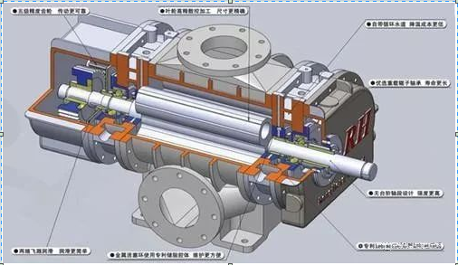 罗茨鼓风机是一种定容积迥转式气体动力机械。气缸由机壳和两端墙板包容而成,一对相互“咬合”(因为有间隙,两叶轮并不直接接触)的叶轮将进气口与排气口分隔开来,通过一对同步齿轮的转动,两叶轮在气缸中作等速方向旋转,在旋转过程中,进气口的气体不断的被叶轮推移到排气口,从而达到强制排气的目的。罗茨鼓风机故障分析及解决方法: