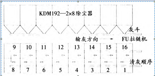 本例情况说明,B须重视除尘器清灰顺序和输灰设备的相关关系,即要注意工艺、设备和电器控制的合理配合。本例经验可以推广到其它任何形式的多室单独清灰的除尘器,不管是单排、双排,还是多排的。