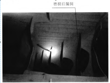 图2 磨损后入V型选粉机的下料溜子