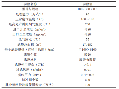 三、窑尾收尘器技术参数