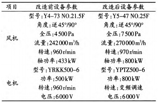 表3 改造前后技术参数