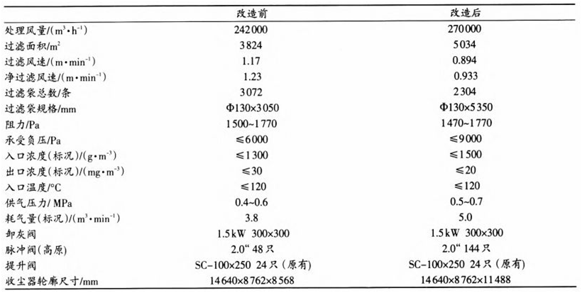 表1 闭路改造前后收尘器配套设备参数