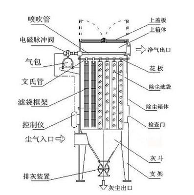 2、气流的阻力,可使用U型压差计来判断运行情况:如压差Z高,可能是滤袋出现堵塞、有水汽冷凝在滤袋上、灰斗积灰过多、或者清灰机构失效以致堵塞滤袋、气体流量增多等情况。